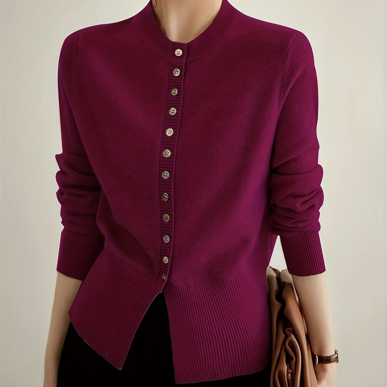 TEMU 2026 새로운 스타일 멀티 버튼 시크한 라운드 넥 긴소매 싱글 브레스티드 슬림핏 몸매 ดู날씬하게 보이는 심플 가디건 탑, 레드, 빈티지 클래식 엘레강스 스타일, 하이엔드 패션