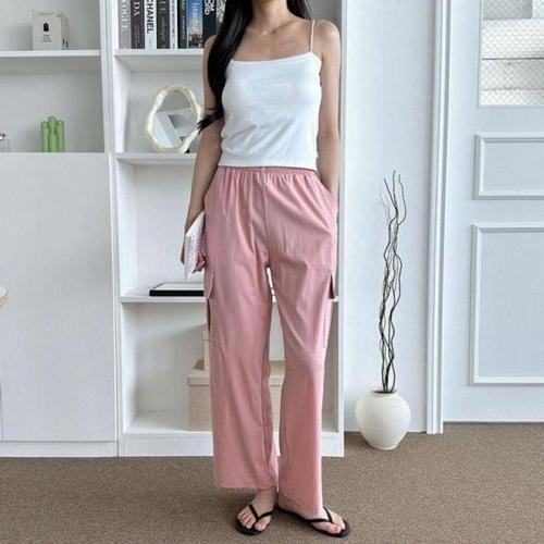 일자바지 와이드핏 쿨소재 허리밴딩 여름 카고팬츠 5 (HSJ-WFKBXJN)