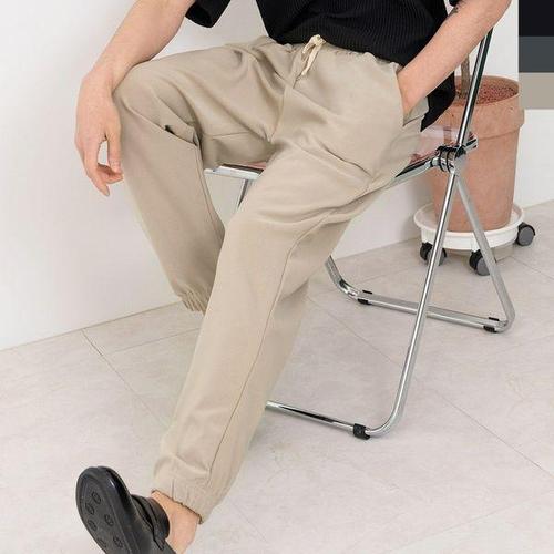 이중지 심플한 밴딩 9부 슬랙스 스판 트레이닝 츄리닝 남자 남성 바지