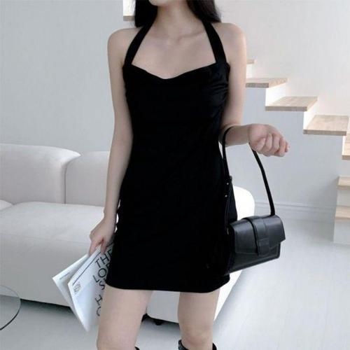 [모노무드]모노무드 JP-198556 블랙 미니 데일리 슬림 드레스 스판 홀터넥 나시 끈원
