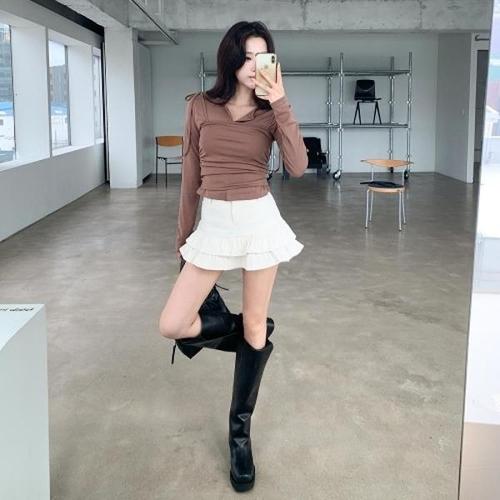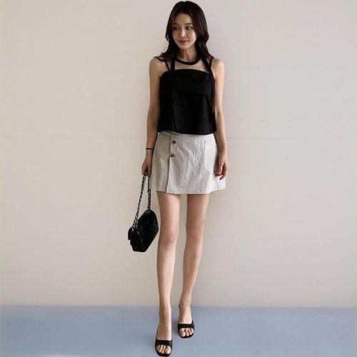 [옷자락]여성 심플 면혼방 스판 징버튼 미니 치마바지