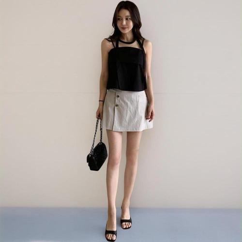 옷자락 / 여성 심플 면혼방 스판 징버튼 미니 치마바지