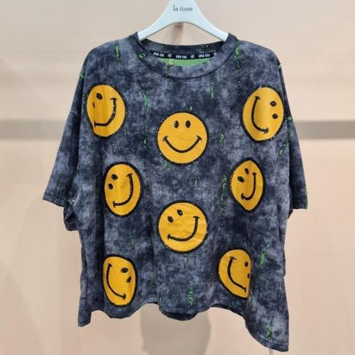 [써스데이아일랜드][여성]스팽글 패치 오버사이즈 티셔츠 T256MTS134W