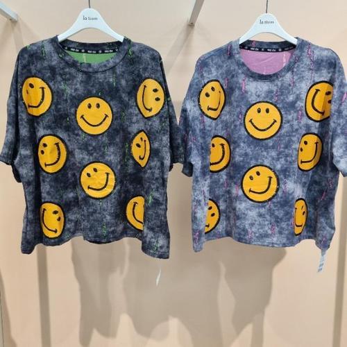 [라티움]라티움 HC34 앞면 반짝이스팽클배색숏짧은루즈핏티셔츠 T2623ts17 (48732953)