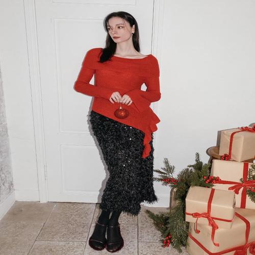 [탱커스]스팽글 플레어 니트 융털 롱 밴딩 스커트 (TX4SK013L0)