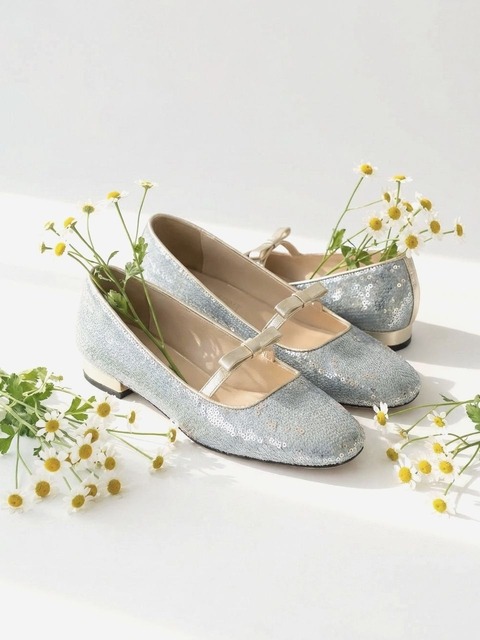[인더발코니] 화이트 스팽글 데님 리본 플랫 단화 2cm