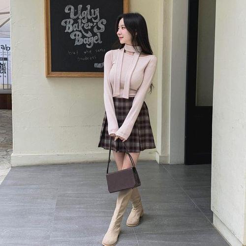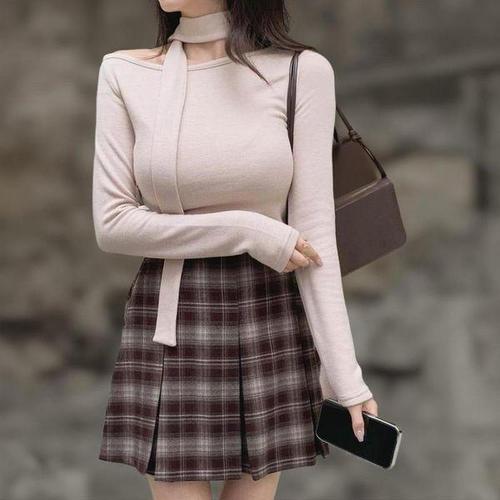 [신상오픈런]여성 키치무드 슬림핏 긴팔 티셔츠와 머플러 세트