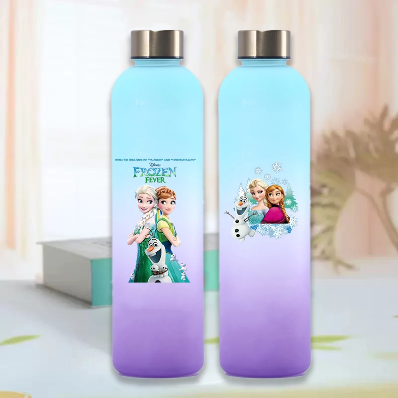 900ML 냉동 물병 음료용 만화 애니메이션 프린트 엘사 안나 캐릭터 스포츠 컵 시간 표시 휴대용 병 선물
