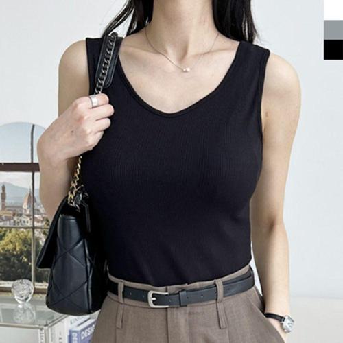 H스타일(CN)스퀘어브이나시 여름 여성 민소매티 나시티 이너 레이어드