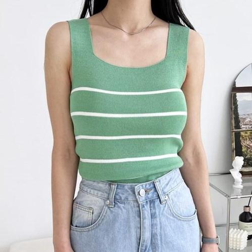 [옷자락] 여성 심플 스프라이프 스퀘어넥 짜임 민소매 니트