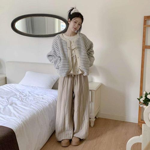 [다잇템]여성 위빙 스프라이프 미니멀리즘 니트