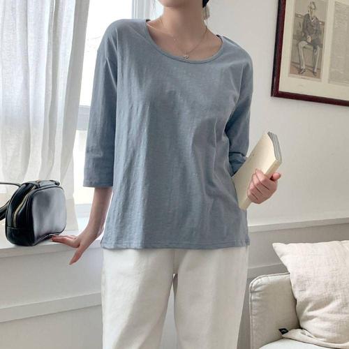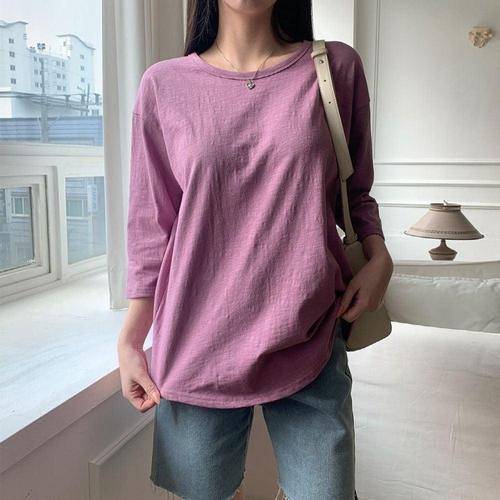 슬라브 무지 빅사이즈 8부 가을 티셔츠 (WFJO469)