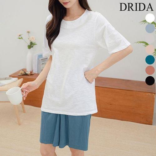 [드리다]여름 여자 반팔 기본티 베이직 이너 라운드 슬라브 빅사이즈 티셔츠 40-50대 중년여성 엄마옷 미..