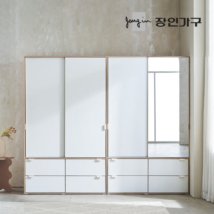 장인가구 [비밀특가] 코라 2400 슬라이딩 옷장 세트 1200 서랍옷장 (행거형)+1200 거울옷장 (선반형)