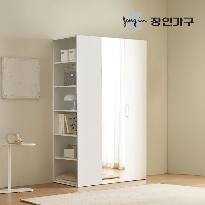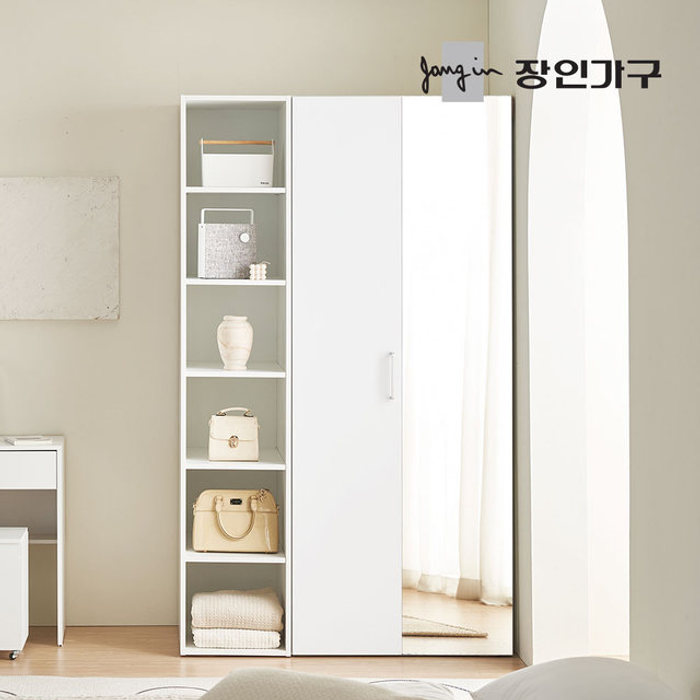 장인가구 [비밀특가] 노드 E0 폴딩도어 슬라이딩 거울 옷장 측면오픈장 C세트 1200 (2단 행거형 거울 800+측면 오픈형 틈새 옷장)
