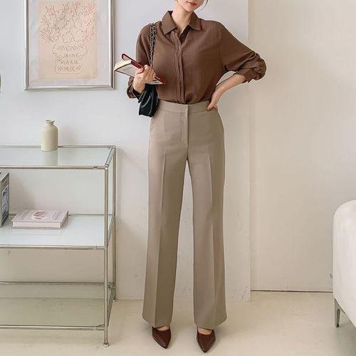 여성 회사원 오피스 출근룩 단화 슬랙스 코디 굽로퍼