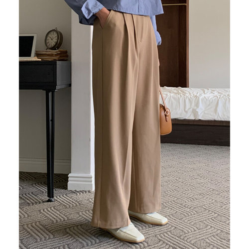 에이치다 / 컨텍 리본 끈 투핀턱 세미와이드 가을 슬랙스