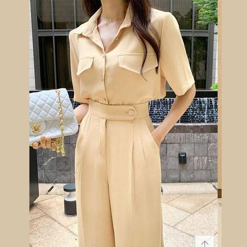 [셀러허브_여성트랜드패션]루즈핏 블라우스 옆지퍼 와이드 슬랙스 팬츠 세트 룩