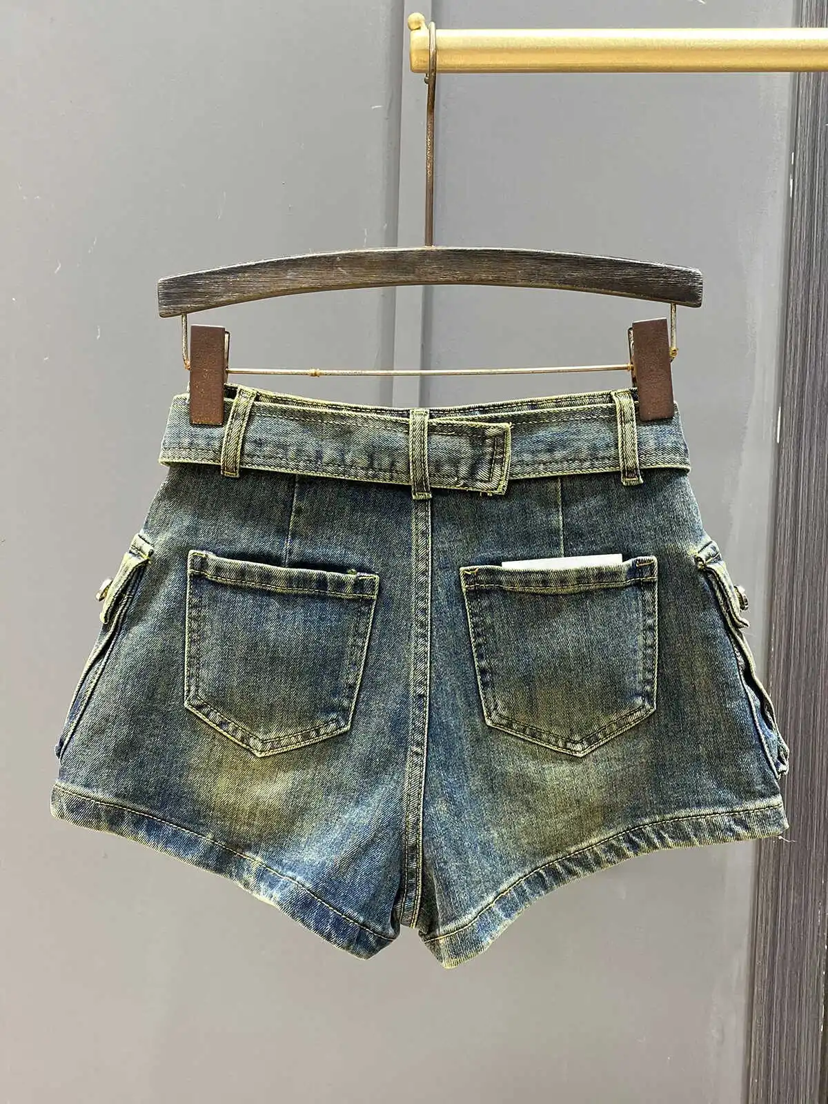 여성 섹시 데님 반바지 Y2K 쁘띠 하이웨이스트 힙업 반바지 개성있는 3D 리본 디테일 슬림 여름 핫팬츠
