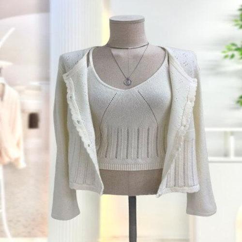 [스타일리쉬바이피클]페미닌 펀칭 니트 슬림 탑 가디건 울세트