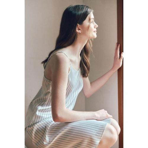 [솔브]비너스(정상) 실크필 스트라이프 여성 속가운 슬립형잠옷 VGN4570B_IV_C