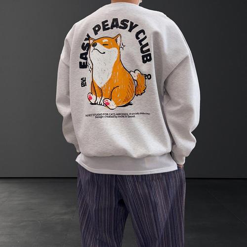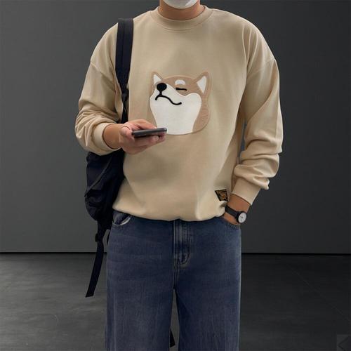 [노멀쉐이크]이중지 합포 오버핏 시바견 프린팅 맨투맨 (4color)