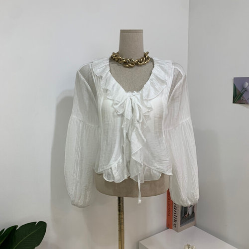 [엄지척]내추럴 구김 프릴브이넥 여유핏 시스루 블라우스_19660509_667501