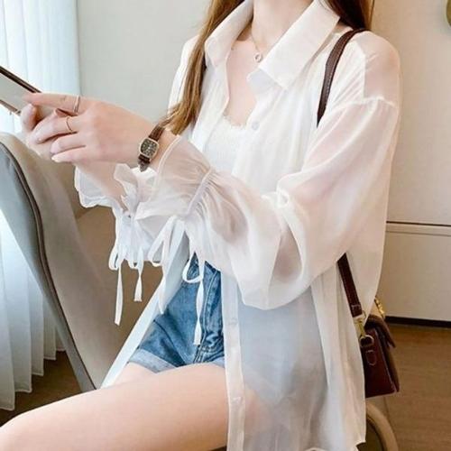 씨샵인더룸 / (신상 무료배송)치니 프릴 리본끈 시스루 긴팔 블라우스 3color