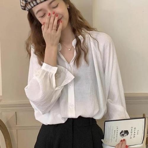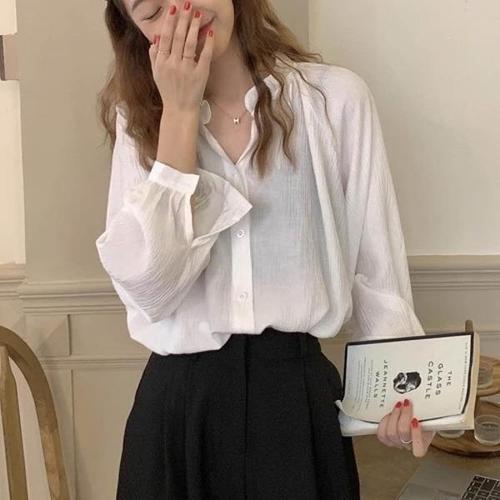 데일로엔 여성 심플 카라넥 긴팔 셔츠 블라우스
