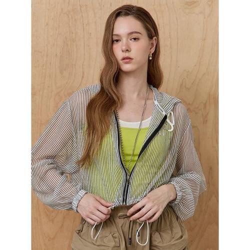 [마쟈]스트라이프 패턴 시스루 크롭 후드 집업 점퍼