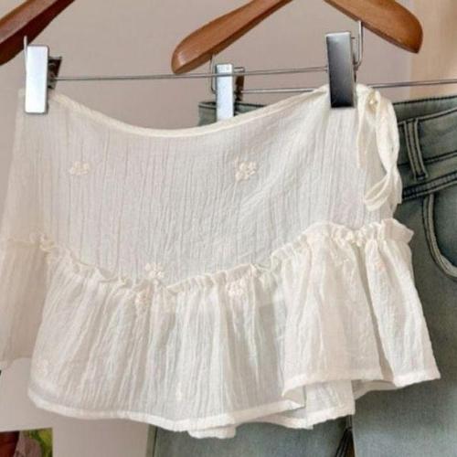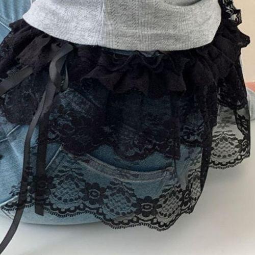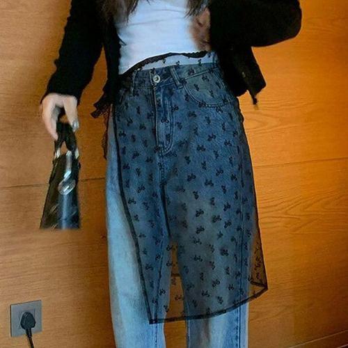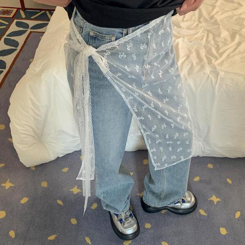 [옷자락]여자 리본 패턴 시스루 레이스 랩 스커트
