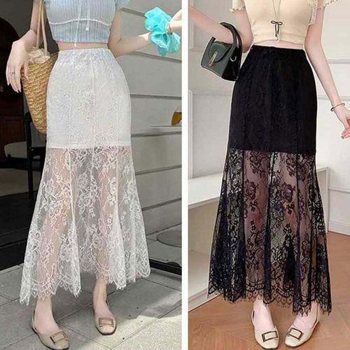 [에이치플러스몰]레이스 시스루 랩스타일 여성 레이어드 스커트 패션템