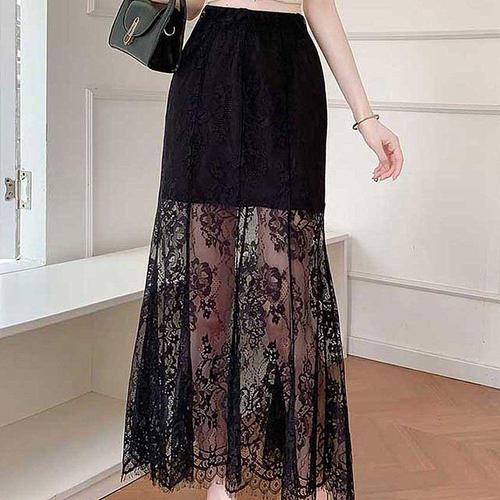 [오너클랜]인기상품 여성 레이스 시스루 롱스커트 캐주얼룩 치마 [WFKORQT_260411]