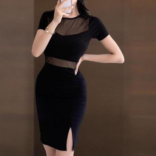 [신상오픈런]여성 시스루 반팔 미니 드레스 옆트임 원피스