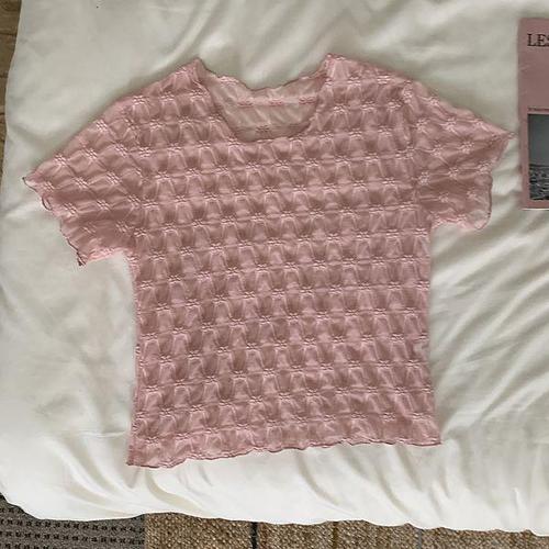 샵앤) 국산 여성 시스루 펀칭 반팔 니트 티셔츠 WDM-WKN-2LCBB1064