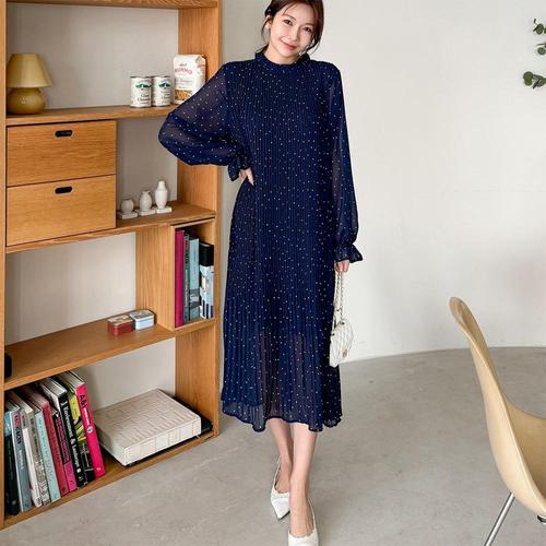 [옷자락] [시즌오프]아코디언 시스루 긴팔 도트 빅사이즈 롱원피스_5
