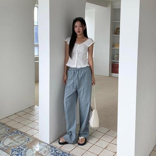 [다잇템][다잇템] 여성 통바지 밑단스트링 시어서커 격자 밴딩_22074315_588872