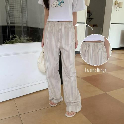 시어서커 줄지 여름 스트라이프 와이드 롱 밴딩 팬츠 2color 비치웨어