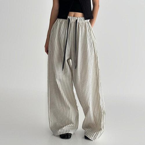[옷자락] 여자 시어서커 여름팬츠 와이드핏 스트라이프 면바지