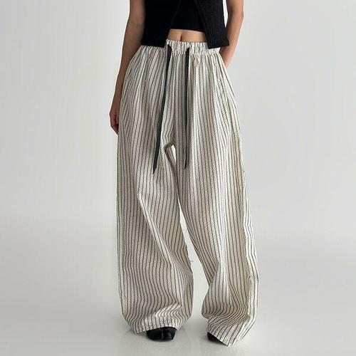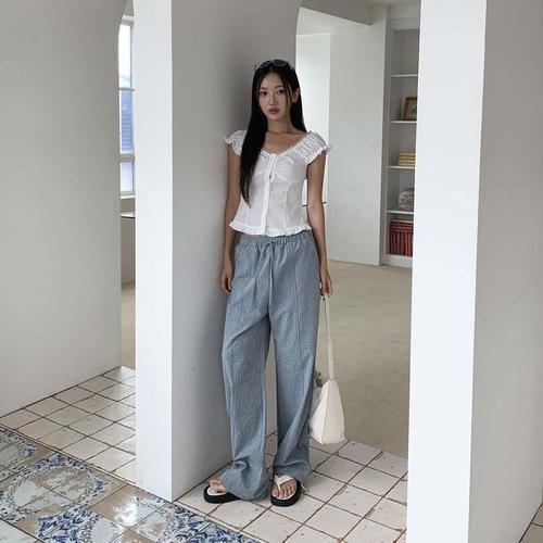 [다잇템]여성 넓은 밑단스트링 고무줄 시어서커 팬츠