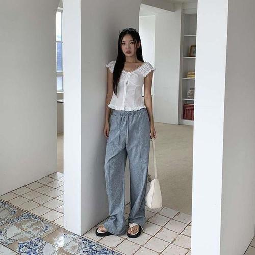 [다잇템]여자 와이드핏 여름팬츠 시어서커 면바지