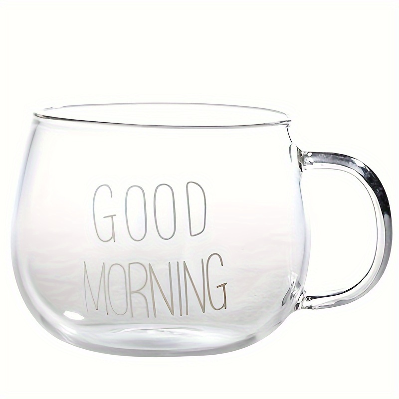 TEMU 유럽하이필릭 고 붕규산 유리 커피 머그, 투명 아침 식사 우유 컵 오트밀, 주스, 요거트, 차, 음료 - 좋은 아침 글씨가 새겨진 내구성 있는 유리 찻잔