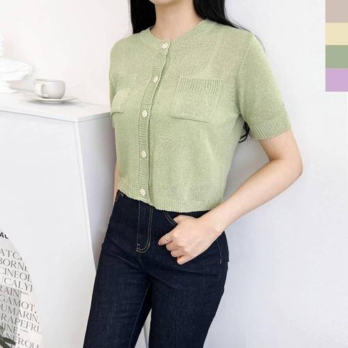 여성상의 여자시원한포켓크롭반팔니트가디건 봄니트 WFLPT3V