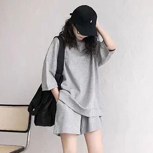 [엄지척]여자 데일리 편한 시원한 라운드 반팔티 반바지 세트_19557322_667501