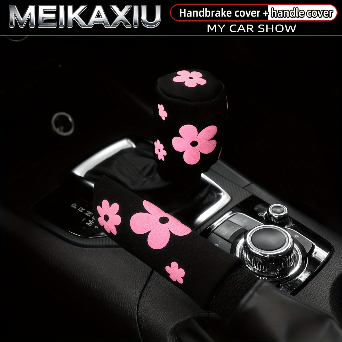 TEMU 2개 세트 3D 퍼프 패브릭 자동차 핸드브레이크 커버 & 기어 시프트 노브 커버, 여성용 자동차 내부 액세서리