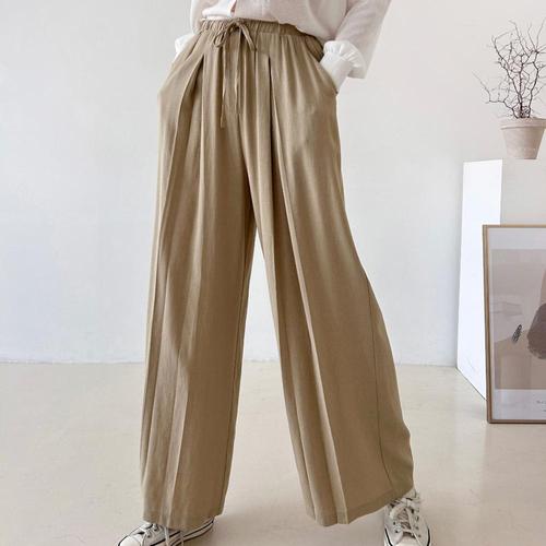 여성 리본 허리밴딩 앞핀턱 여유핏 시원한 여름 통 바지N NYS-WPT-4472-모카