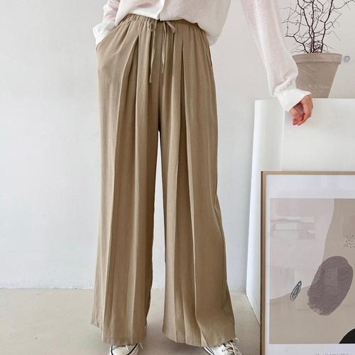 여성 리본 허리밴딩 앞핀턱 여유핏 시원한 여름 통 바지N NYS-WPT-4472-베이지