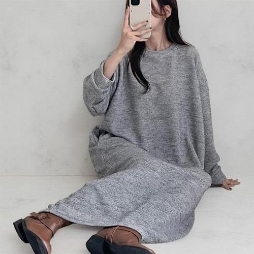 [다잇템][다잇템] 여성 라운드 큰사이즈 주머니 드레스 네이비 롱니트 부클_23197271_588872