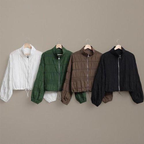 [신상오픈런]여성 하이넥 집업 바람막이 점퍼 셔링 스트링 밴딩