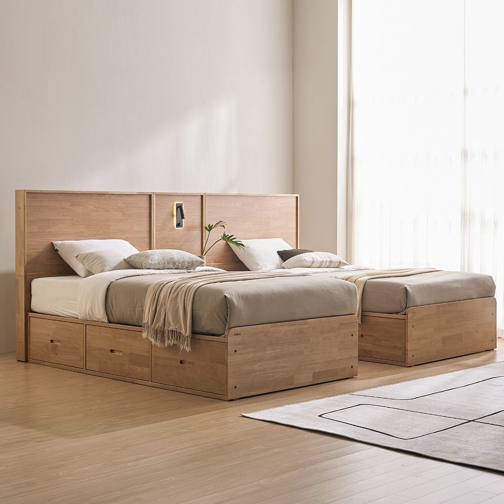 프렌드 원목 호텔형 트윈침대 신혼 부부 침대 수납프레임 SS+SS (협탁포함)